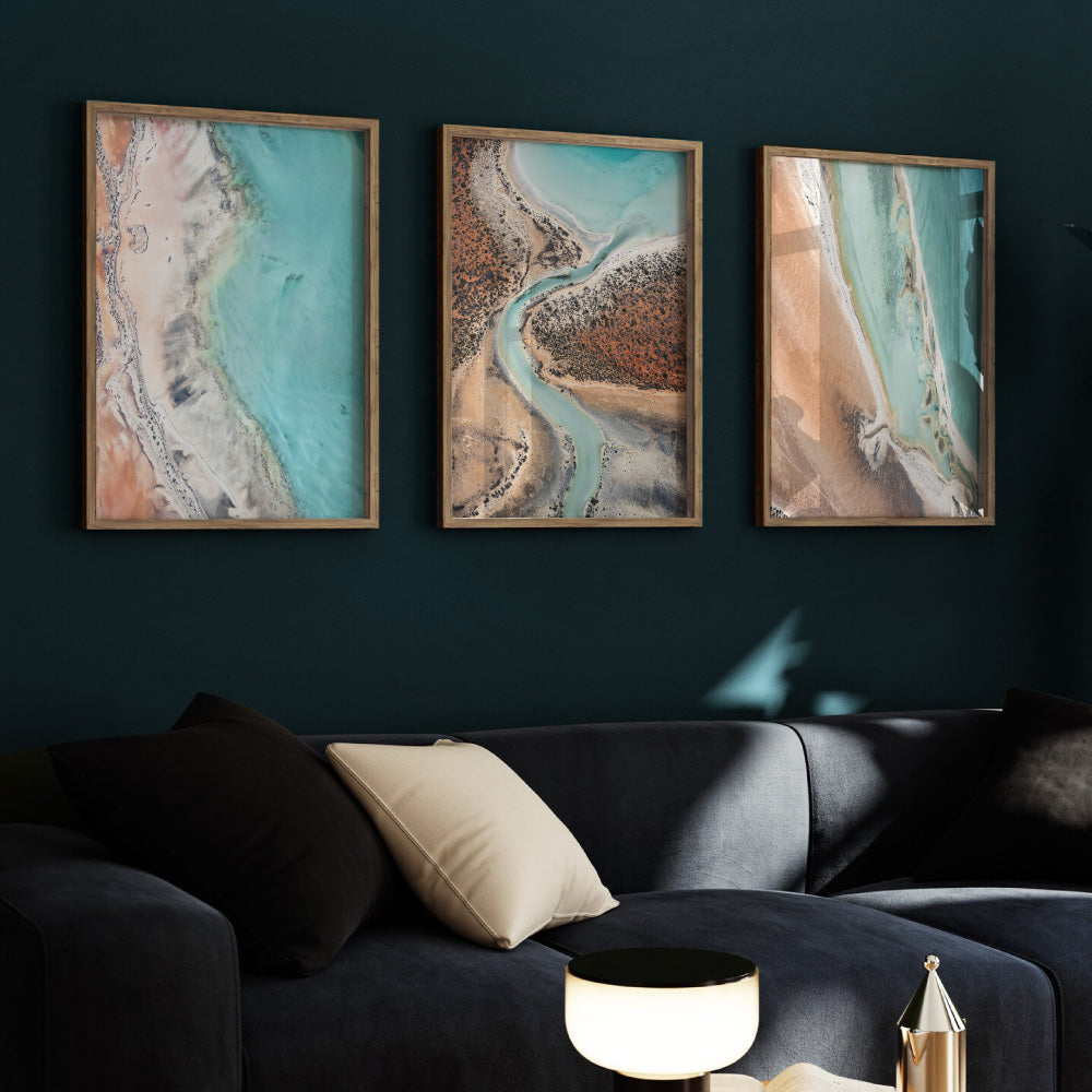 Shark Bay Aerial Beach View III - Art Print, Poster, Stretched Canvas or Framed Wall Art Prints, shown framed in a room