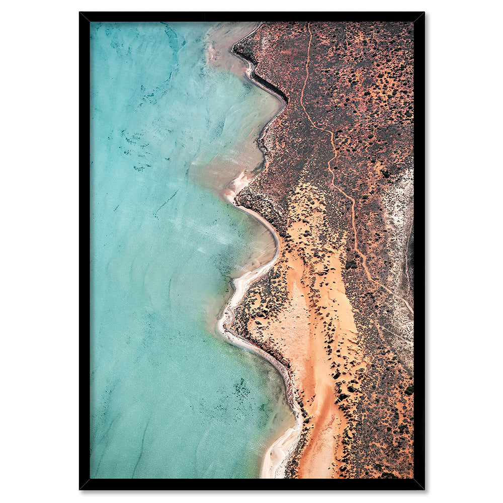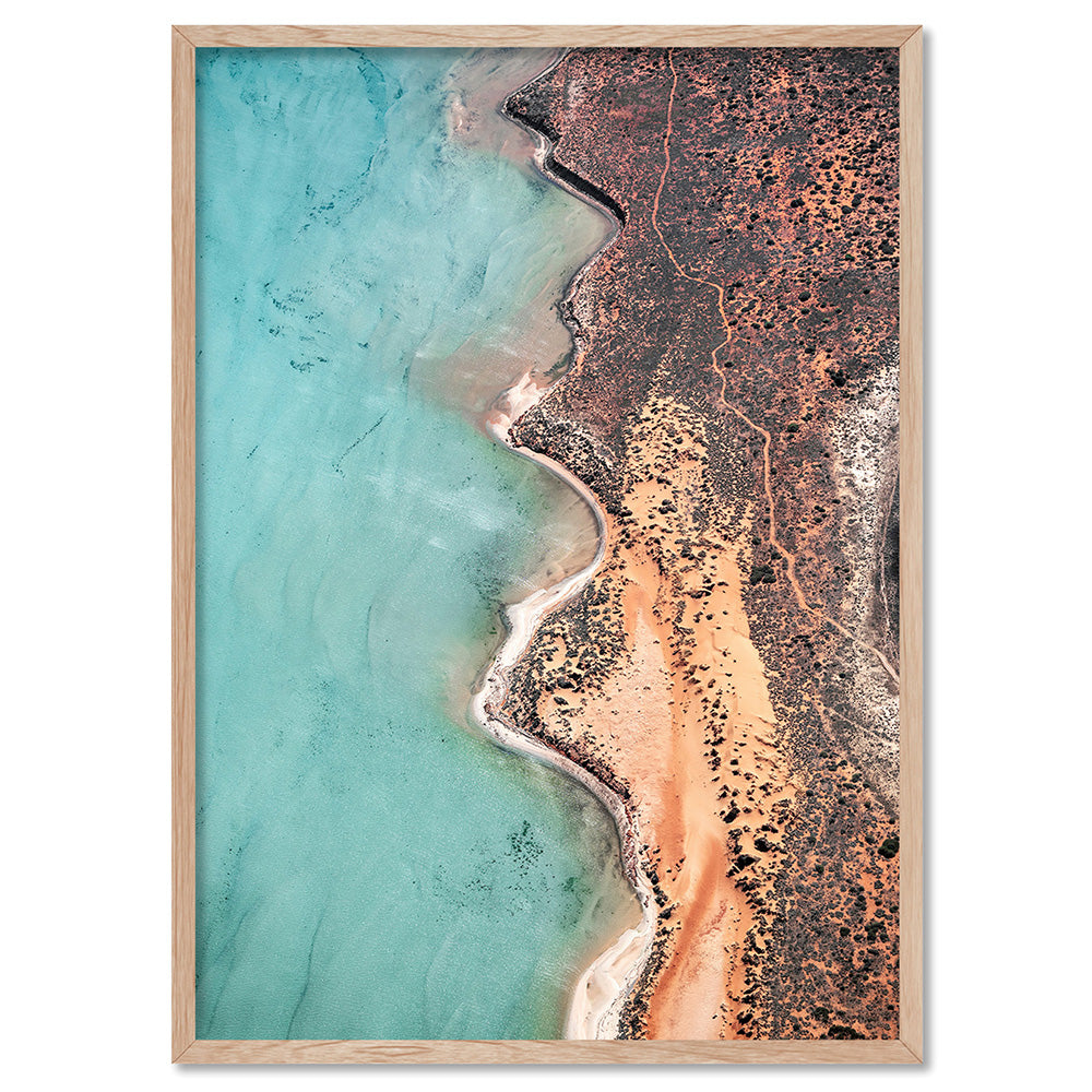 Shark Bay Aerial Beach View VI - Art Print, Poster, Stretched Canvas or Framed Wall Art, Showing White , Black, Natural Frame Colours, No Frame (Unframed) or Stretched Canvas, and With or Without White Borders