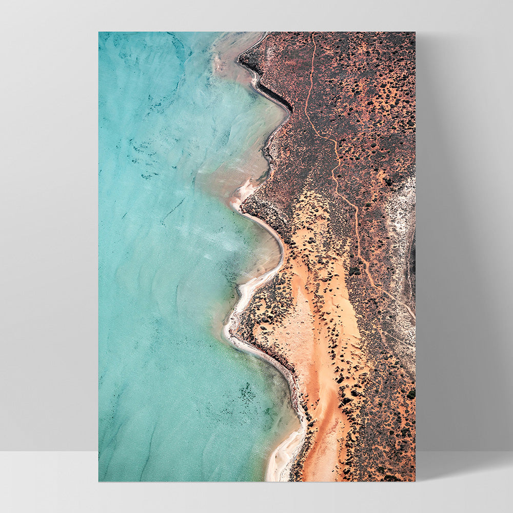 Shark Bay Aerial Beach View VI - Art Print, Poster, Stretched Canvas, or Framed Wall Art Print, shown as a stretched canvas or poster without a frame
