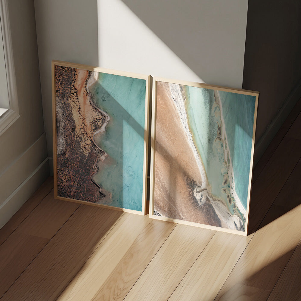 Shark Bay Aerial Beach View VI - Art Print, Poster, Stretched Canvas or Framed Wall Art Prints, shown framed in a room