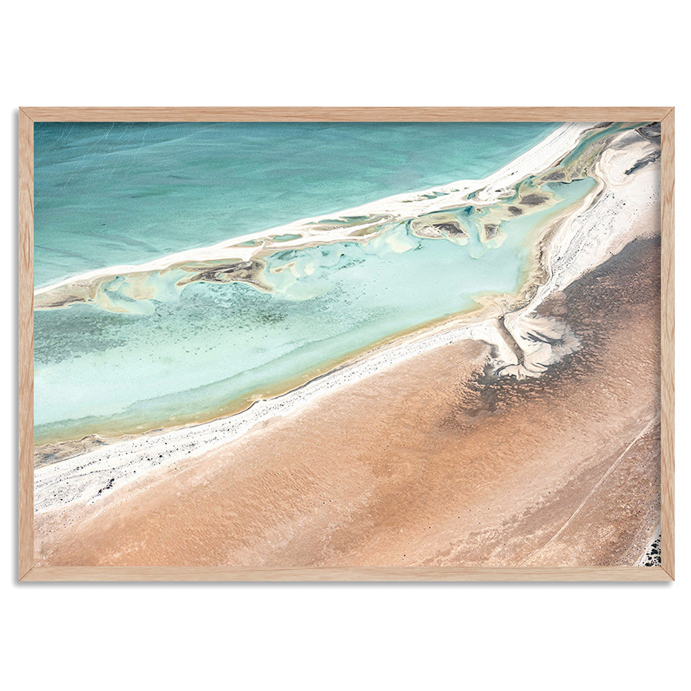 Shark Bay Aerial Beach View II - Art Print, Poster, Stretched Canvas, or Framed Wall Art Print, shown in a natural timber frame