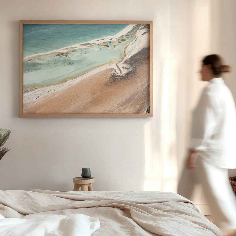 Shark Bay Aerial Beach View II - Art Print, Poster, Stretched Canvas or Framed Wall Art Prints, shown framed in a room