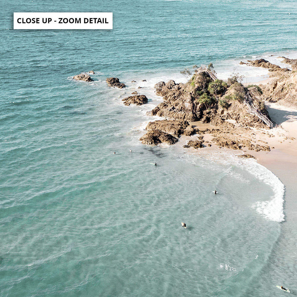 The Pass Byron Bay Aerial - Art Print, Poster, Stretched Canvas or Framed Wall Art, Close up View of Print Resolution