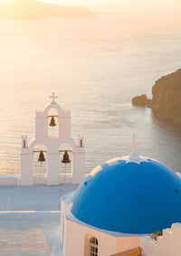 Santorini Blue Dome Church & Bells- Art Print by Victoria's Stories