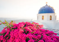 Santorini in Spring | Blue Dome Church Landscape - Art Print by Victoria's Stories