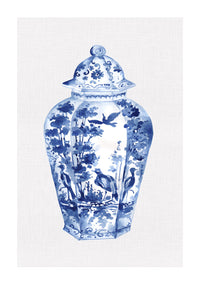Chinoiserie Ginger Jar on Linen V - Art Print