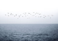 Flock of Birds on Ocean Horizon - Art Print, Poster, Stretched Canvas or Framed Wall Art, Close up View of Print Resolution