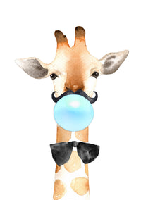 Bubblegum Giraffe Moustache | Blue Bubble - Art Print