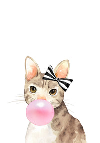 Bubblegum Kitty Cat Stripe Bow | Pink Bubble - Art Print