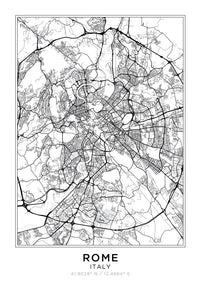 City Map | ROME - Art Print, Poster, Stretched Canvas or Framed Wall Art, Showing White , Black, Natural Frame Colours, No Frame (Unframed) or Stretched Canvas, and With or Without White Borders