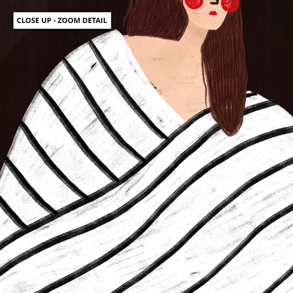 The Woman with Black and White Stripes - Art Print by Bea Muller