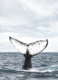 Humpback Whale Tail - Art Print, Poster, Stretched Canvas or Framed Wall Art, Showing White , Black, Natural Frame Colours, No Frame (Unframed) or Stretched Canvas, and With or Without White Borders