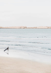 Sandy Beach, Surfer & Ocean Waves in Pastels - Art Print