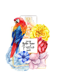 Floral Perfume Bottle | Rainbow Parrot - Art Print