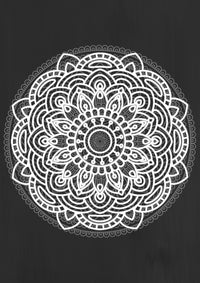 Mandala in Charcoal & White - Art Print, Poster, Stretched Canvas or Framed Wall Art, Showing White , Black, Natural Frame Colours, No Frame (Unframed) or Stretched Canvas, and With or Without White Borders