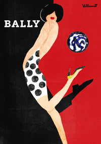 Bernard Villemot | Bally Kick in Sketch Grainy Effect - Art Print, Poster, Stretched Canvas or Framed Wall Art, Showing White , Black, Natural Frame Colours, No Frame (Unframed) or Stretched Canvas, and With or Without White Borders