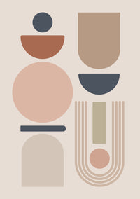 Mid Century Geo Shapes III - Art Print, Poster, Stretched Canvas or Framed Wall Art, Showing White , Black, Natural Frame Colours, No Frame (Unframed) or Stretched Canvas, and With or Without White Borders
