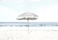 Parasol Beach View - Art Print, Poster, Stretched Canvas, or Framed Wall Art Print, shown in a white frame