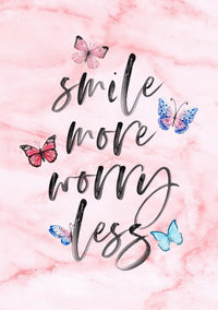 Smile More, Worry Less | Butterflies & Pink Marble - Art Print
